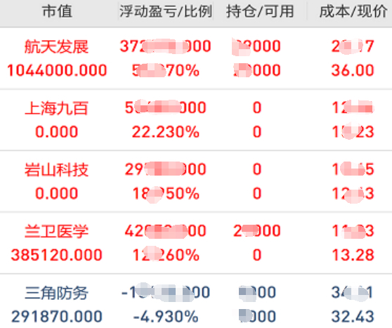 1月13日持仓如下:继续持有:000547航天发展300775三角防务卖出:60