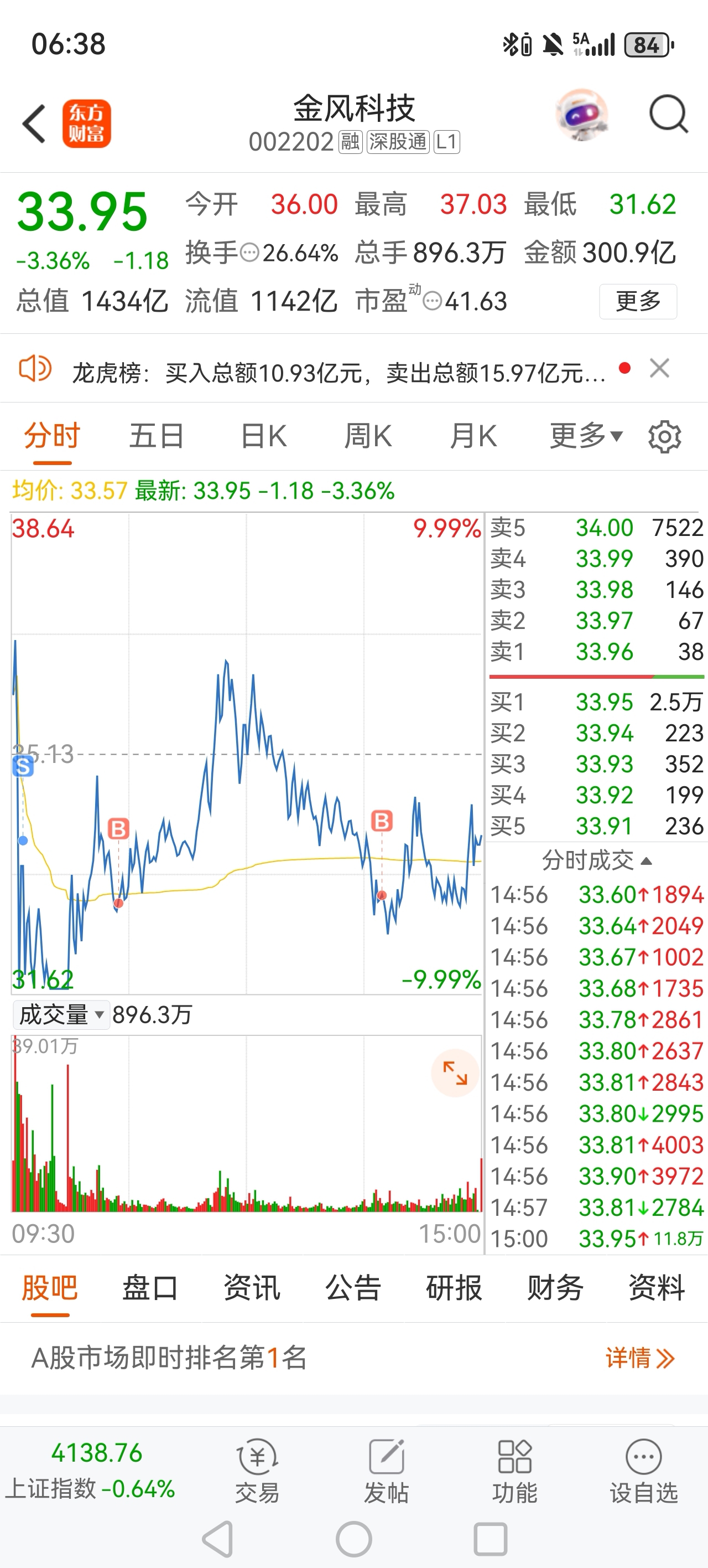 $金风科技(SZ002202)$ 跌停反抽卖,企稳了再买回来