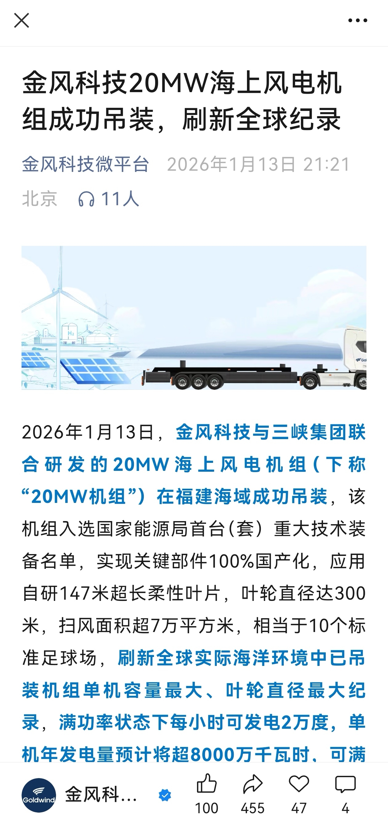 $金风科技(SZ002202)$ 牛逼,刷新全球记录!金风的新能源,清洁能源,风电,海洋经济也是世界龙头