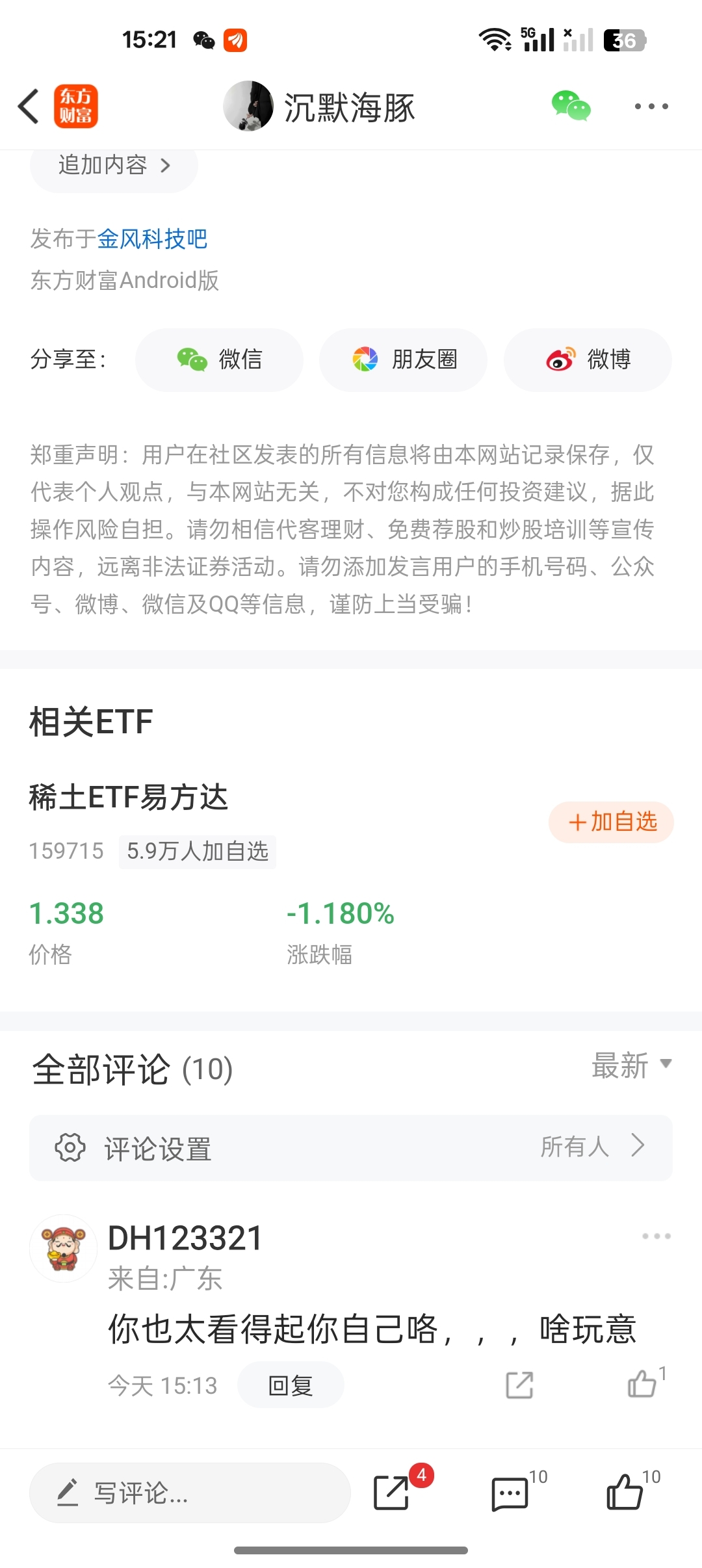 温馨提示: 1.根据《证券法》规定,禁止编造、传播虚假信息或者误导性信息,扰乱证券市场;2.用户在本社区发表的所有资料、言论等仅代表个人观点,与本网站立场无关,不对您构成任何投资建议。用户应基于自己的独立判断,自行决定证券投资并承担相应风险。《东方财富社区管理规定》