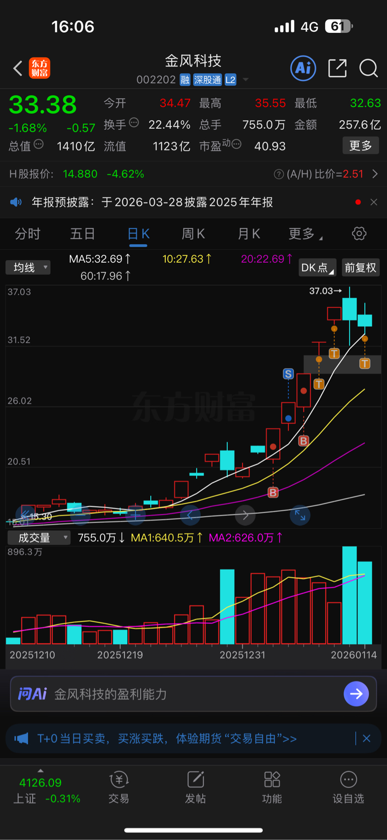 涨的时候连续几个涨停,板块调整时候几十家跌停,金风跌三个点,今天板块调整金风也才