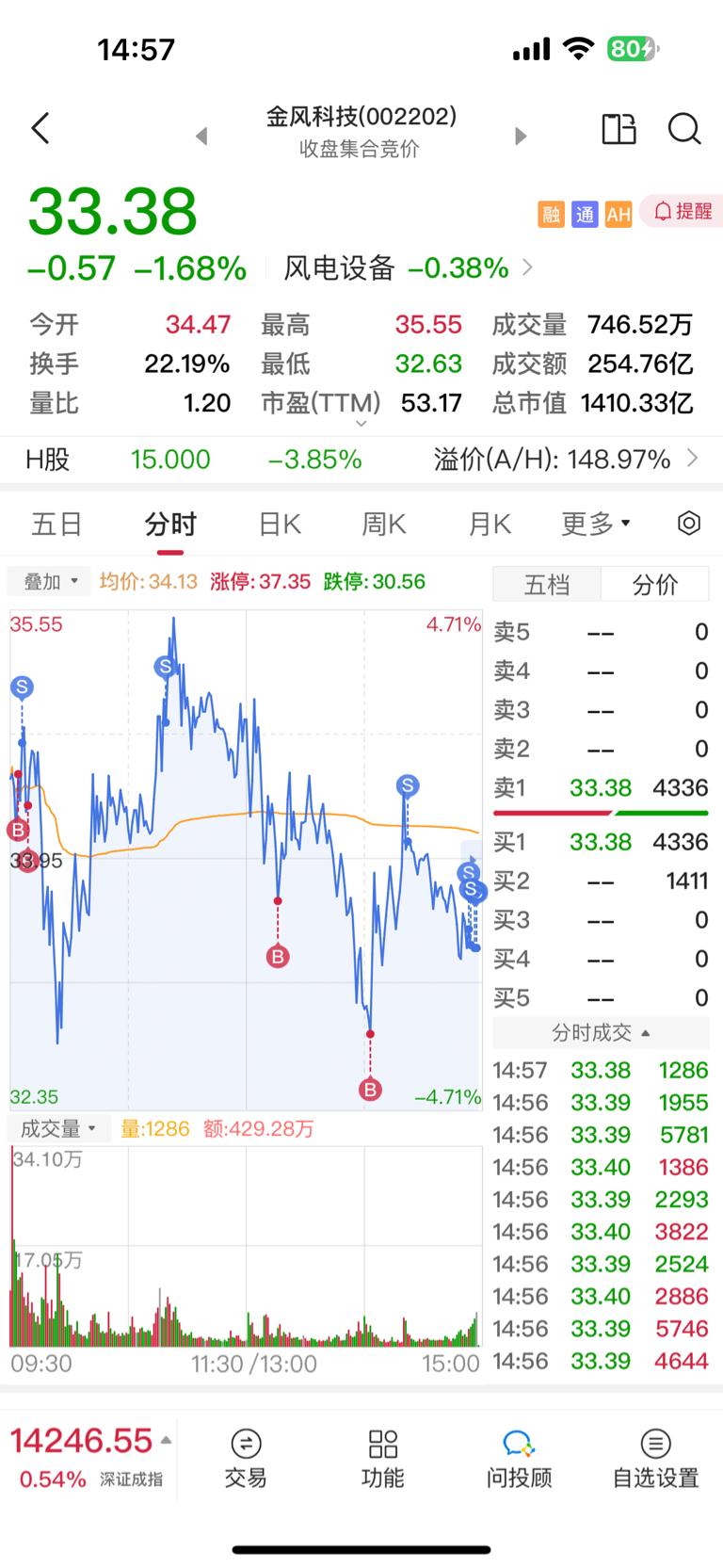 $金风科技(SZ002202)$ 不知道尾盘卖出去,是否正确