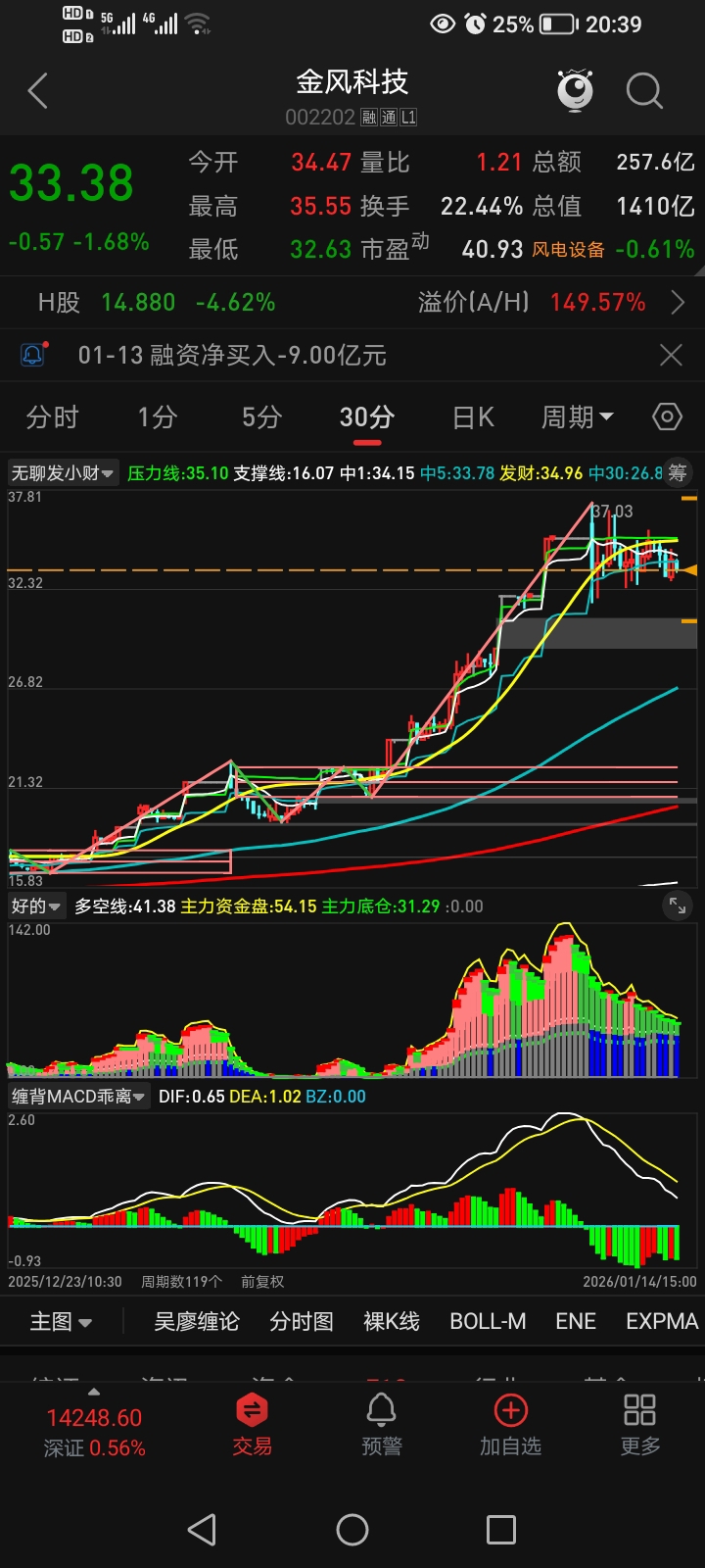 金风30分钟级别破了发财线,日线级别主力底仓连续两天快速降低。不妙,建议快逃