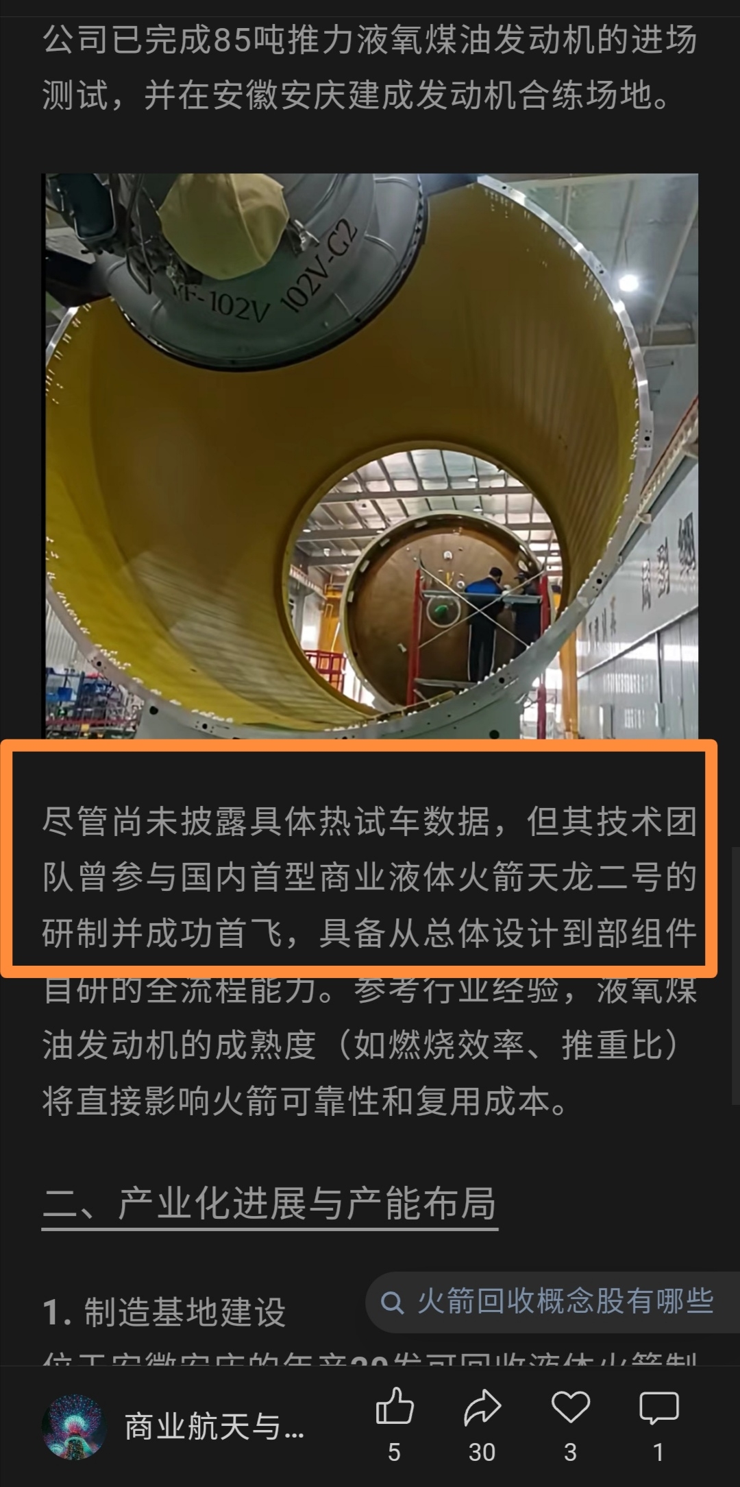 $中衡设计(SH603017)$ 首先说观点,致航科技的火箭应该是最容易回收成功的火箭。其2月初发射,很可能是中国首家发射成功并且回收成功的火箭公司。