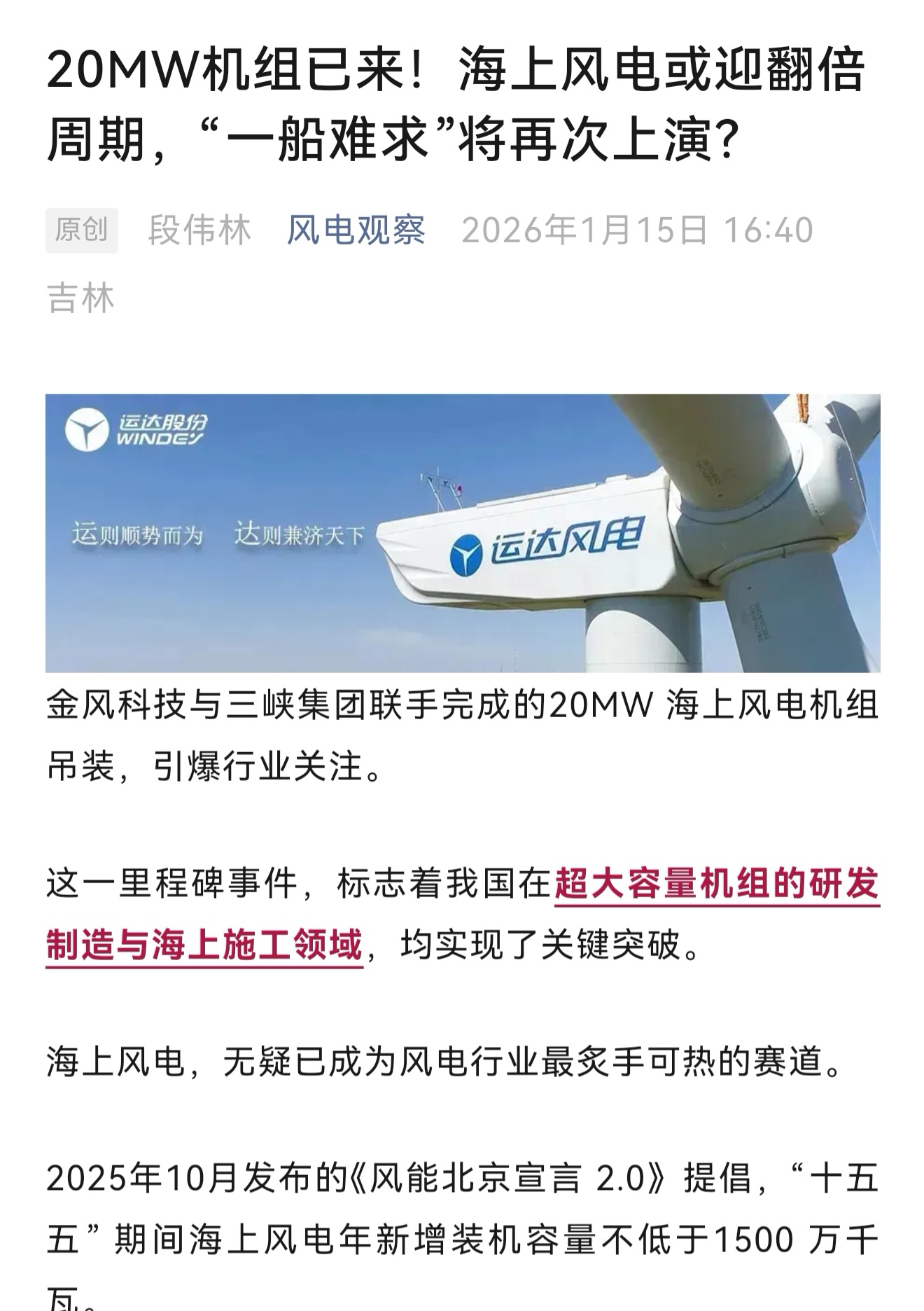 风电盘后发重磅利好