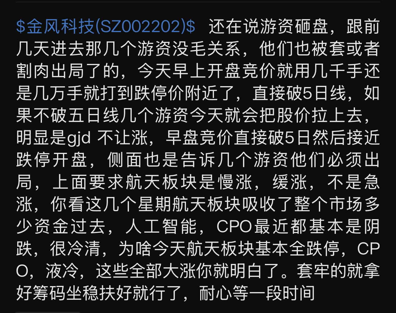 $金风科技(SZ002202)$ 逛了半天股吧,贴吧还有抖音那些,感觉还是这个解释比较合理。 这么大的盘子跌停,除非超级大利空,明显今天就是集体降温,管你什么涨多涨少!明天估计还要继续降温! 周一大概率修复,走慢牛趋势。 没有柚子更好!!