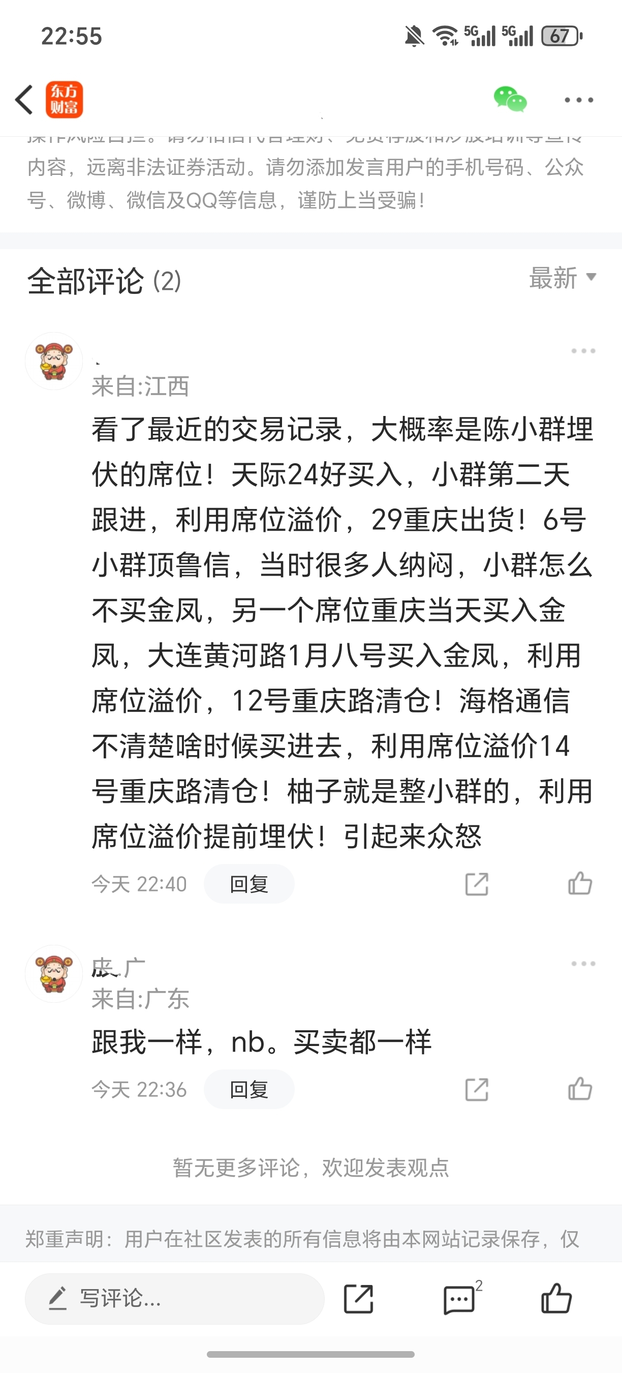 温馨提示: 1.根据《证券法》规定,禁止编造、传播虚假信息或者误导性信息,扰乱证券市场;2.用户在本社区发表的所有资料、言论等仅代表个人观点,与本网站立场无关,不对您构成任何投资建议。用户应基于自己的独立判断,自行决定证券投资并承担相应风险。《东方财富社区管理规定》