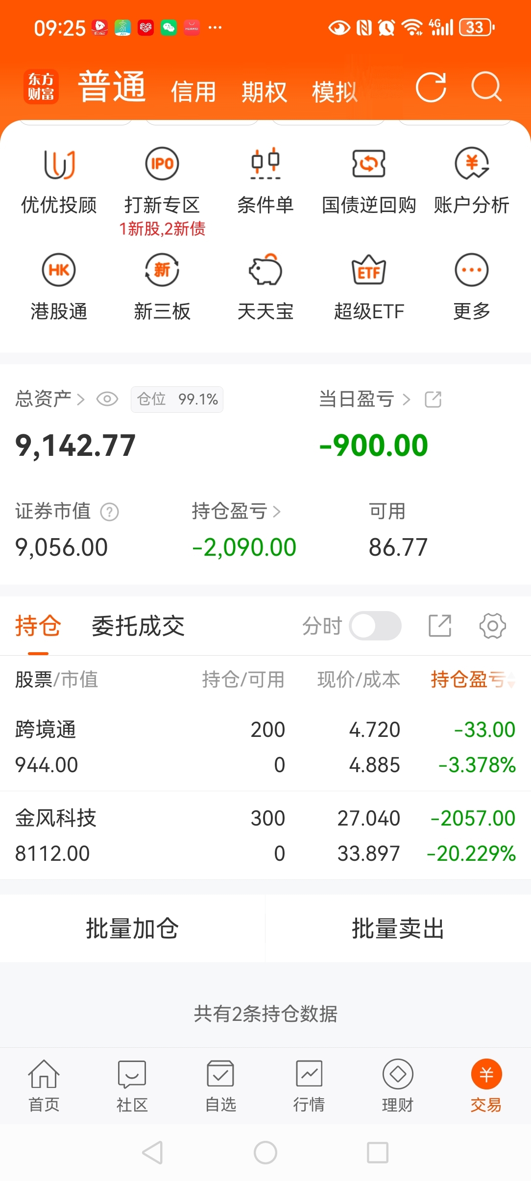 一万实盘第6天,四天赚一两千,心有点飘了,一朝回到解放前,不过我不放弃,金风接下