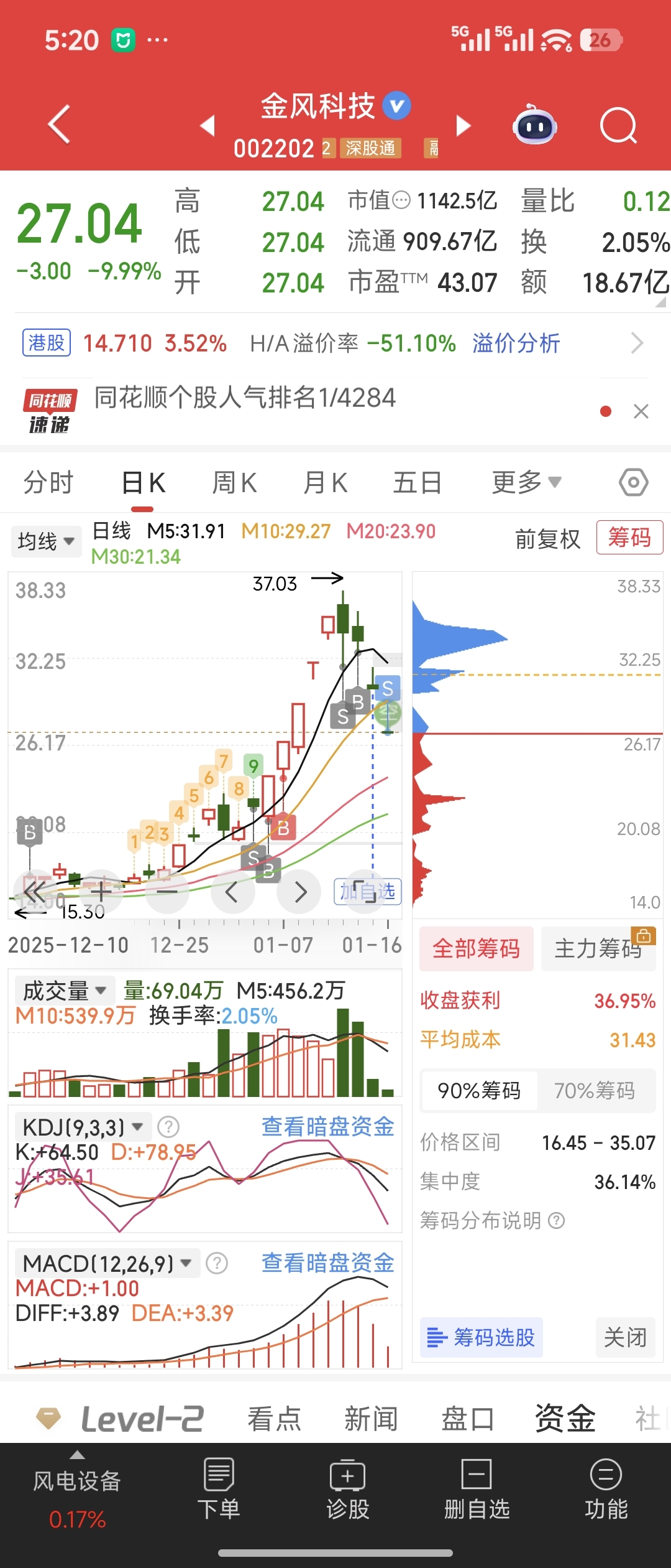 $金风科技(SZ002202)$ 金凤一战,妻离子散,本来自己的交易选择就是爆量大阴线离场,本来都走了,周三看着承接挺好又回来一大半,其实一样,就算不在金凤亏这几天也在别的地方亏