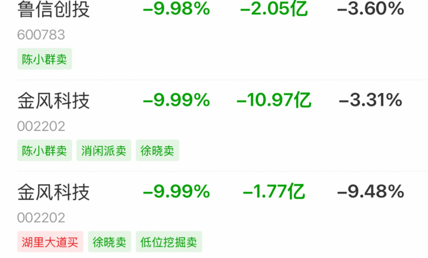 兄弟们,是不是都心凉透了,四个大柚子争先恐后的跑,陈小群,徐晓,低位挖掘,消闲派,全部跑路,剩下我们散户一片哀嚎,群总这次成了带头砸盘大哥