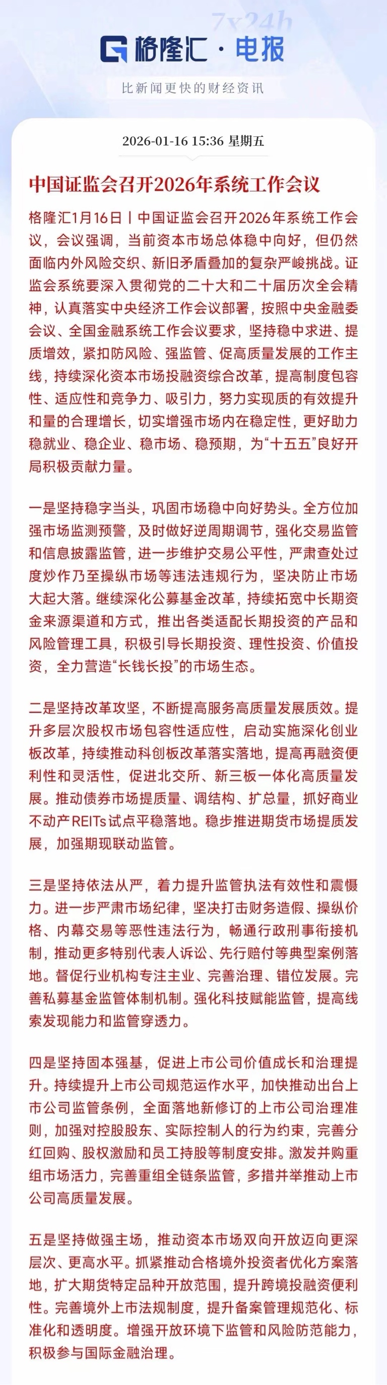 证监会这次会议给2026年定调了,主要有以下方面:稳市场,推改革,严监管,提质量,扩开放。