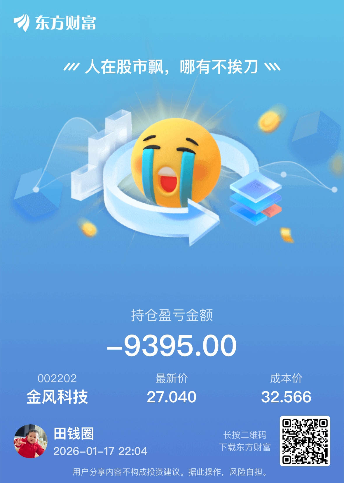 温馨提示: 1.根据《证券法》规定,禁止编造、传播虚假信息或者误导性信息,扰乱证券市场;2.用户在本社区发表的所有资料、言论等仅代表个人观点,与本网站立场无关,不对您构成任何投资建议。用户应基于自己的独立判断,自行决定证券投资并承担相应风险。《东方财富社区管理规定》