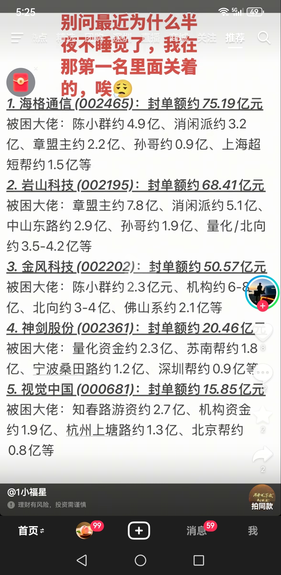 郑重声明:用户在财富号/股吧/博客等社区发表的所有信息(包括但不限于文字、视频、音频、数据及图表)仅代表个人观点,与本网站立场无关,不对您构成任何投资建议,据此操作风险自担。请勿相信代客理财、免费荐股和炒股培训等宣传内容,远离非法证券活动。请勿添加发言用户的手机号码、公众号、微博、微信及QQ等信息,谨防上当受骗!