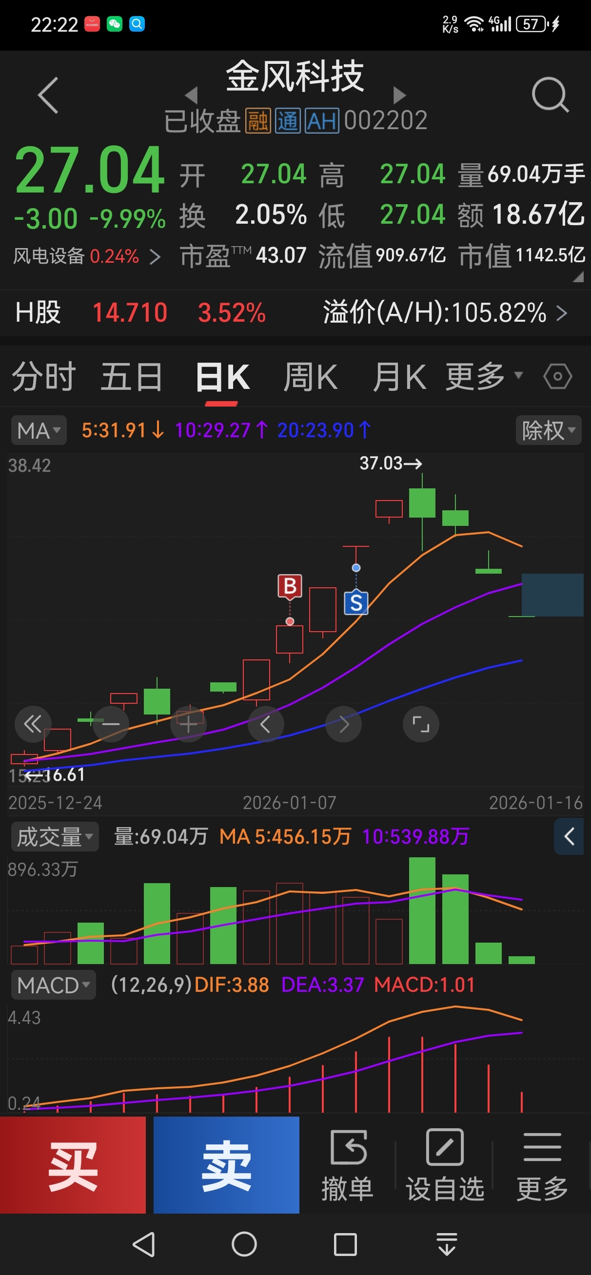 $金风科技(SZ002202)$ 吃了两个涨停跑出来了!