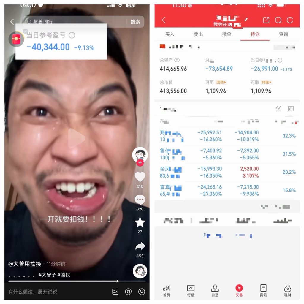 今天开盘大曾子4个股全部跌停,账户跌破40万日内亏损4万虽然盘中有多反弹,但是午盘截止日内还亏损2万7。回本之路漫漫熊途,三个交易日亏损10万没有了,一夜回到解放前白忙活了