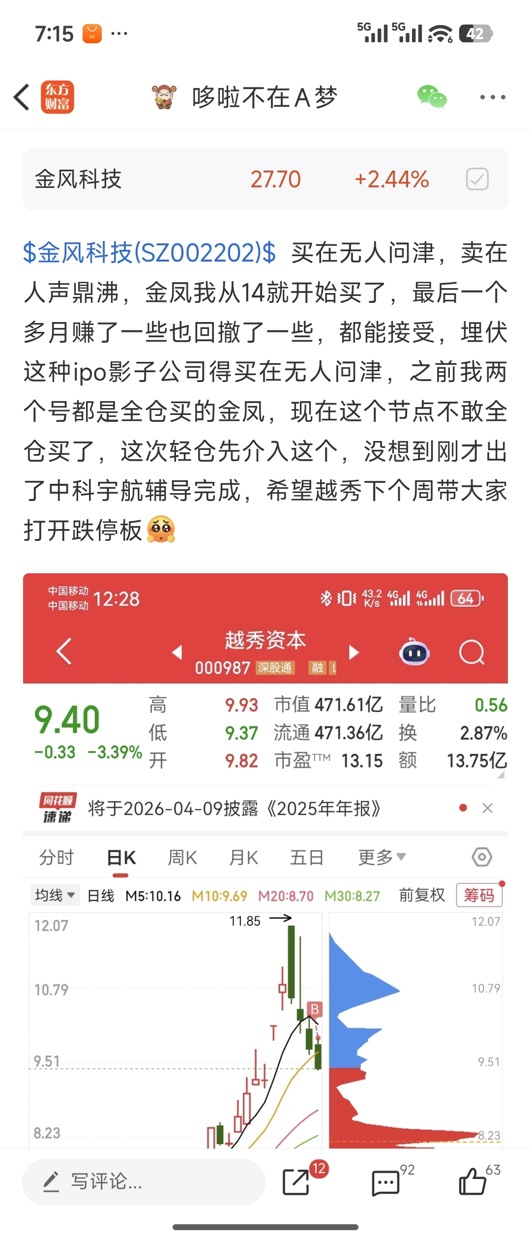 上周五就预判了周一越秀上板带动金凤打开跌停板,因为ipo确实利好这些参股公司,并