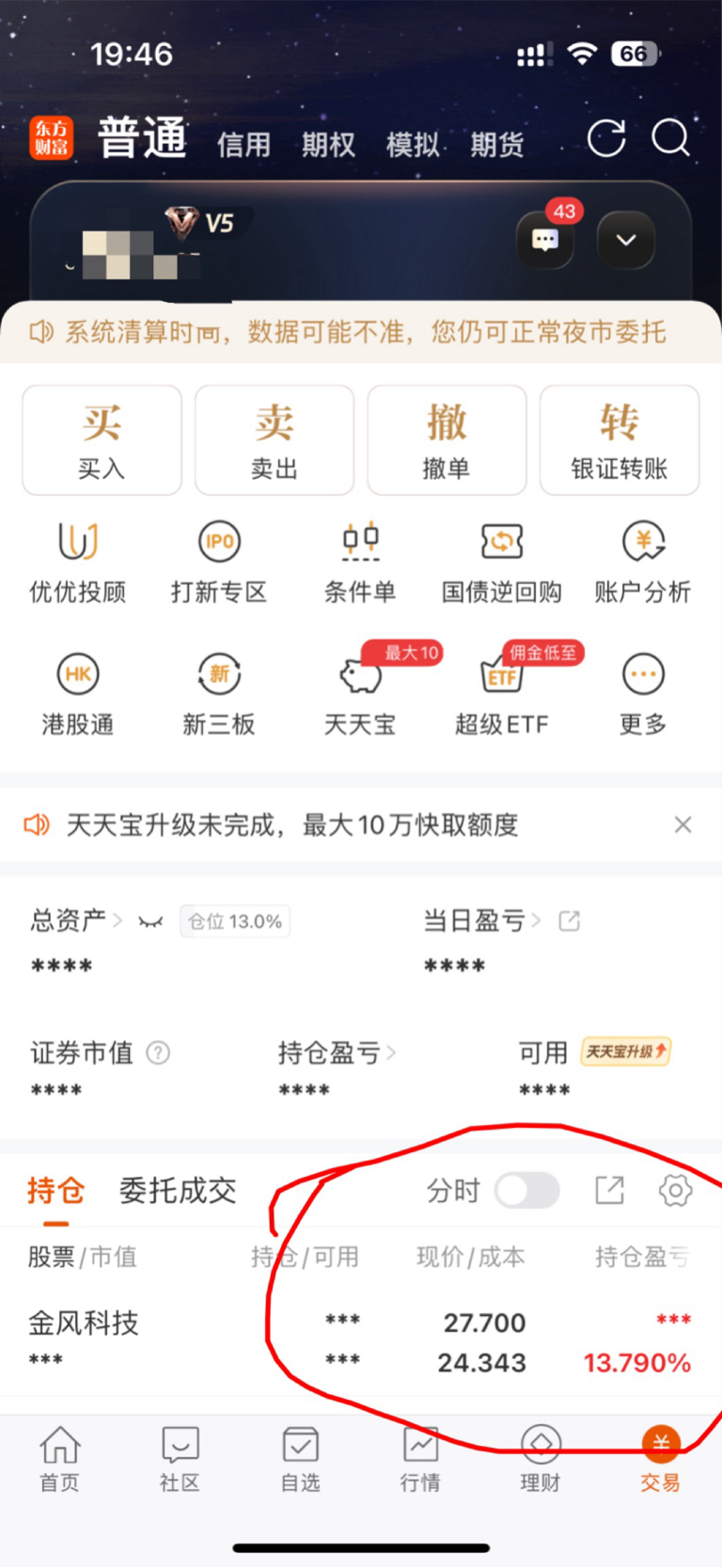 为什么我今天早上买进去的,显示13.79%???明天看情况跑,后面再进,春节前感