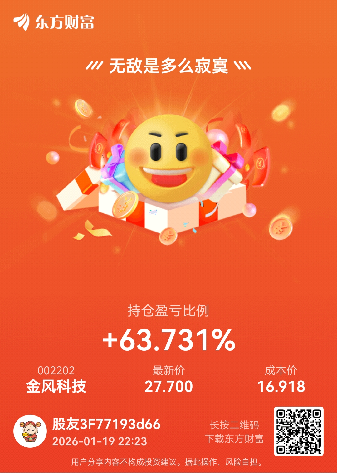温馨提示: 1.根据《证券法》规定,禁止编造、传播虚假信息或者误导性信息,扰乱证券市场;2.用户在本社区发表的所有资料、言论等仅代表个人观点,与本网站立场无关,不对您构成任何投资建议。用户应基于自己的独立判断,自行决定证券投资并承担相应风险。《东方财富社区管理规定》
