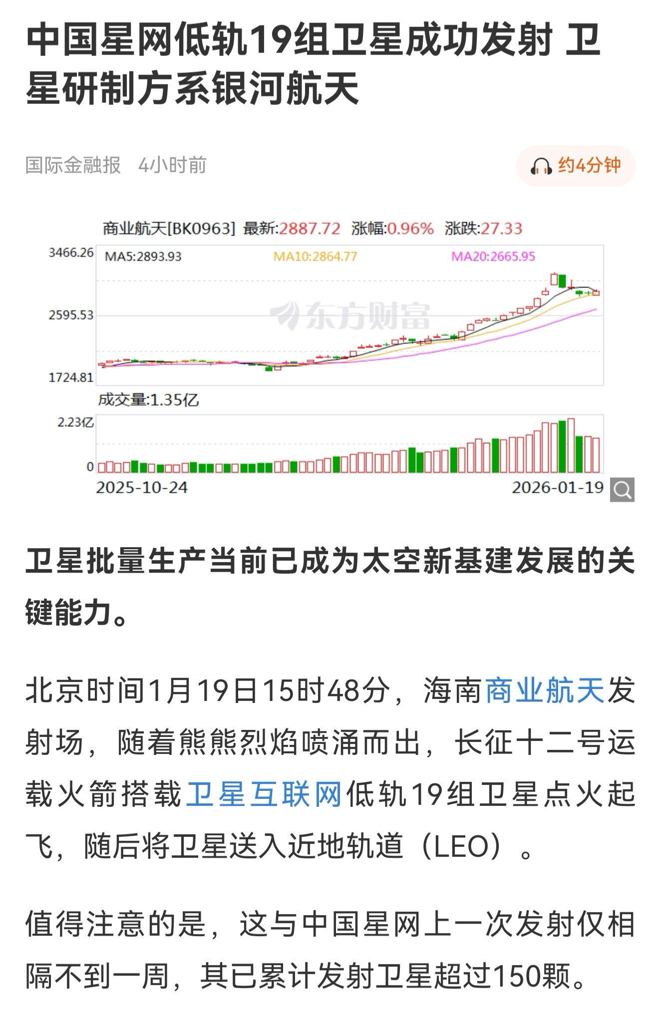 中国星网低轨19组卫星成功发射 卫星研制方系银河航天