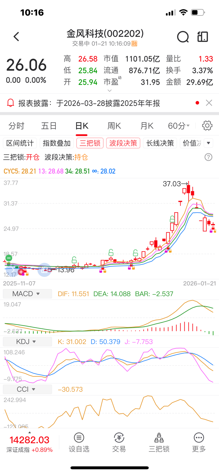$金风科技(SZ002202)$ 今天指南针软件发出开仓信号,大家有钱26.元以下买一点,上去均线,又要来一波,金风科技业绩好,加上商业航天题材,会再来一波,25-26这个位置是最好的买进机会,先建仓留下拭目以待,