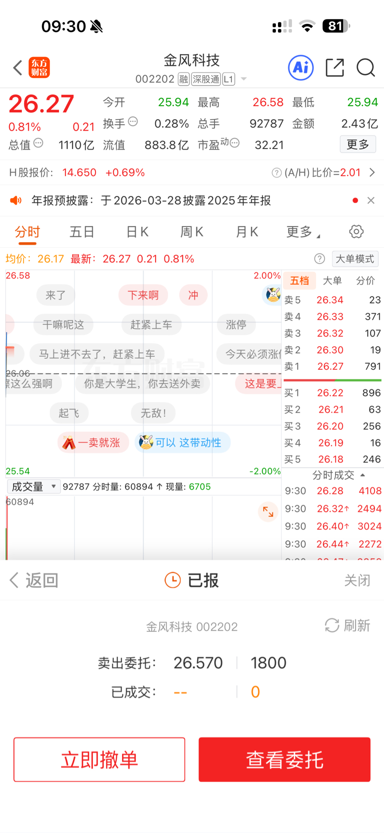 $金风科技(SZ002202)$ 早上挂的57没有卖出草