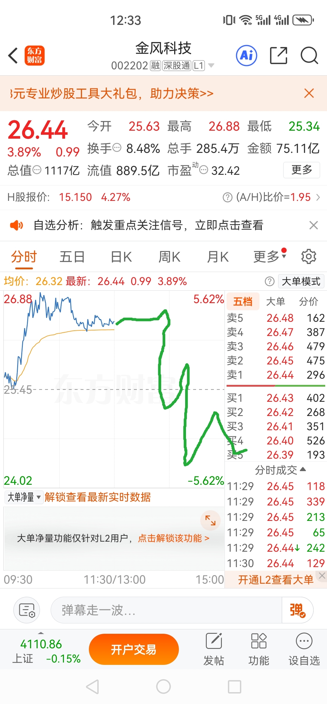 $金风科技(SZ002202)$ 全都听我说,这就是金风下午的走法,如果收盘不绿,我一赔八十,全都来做个见证,看我画的准不准确