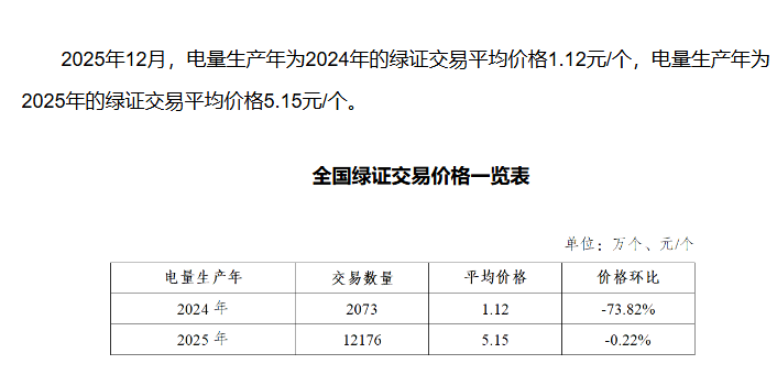 2025年绿证比2024价格涨幅 5.15/1.12=460%