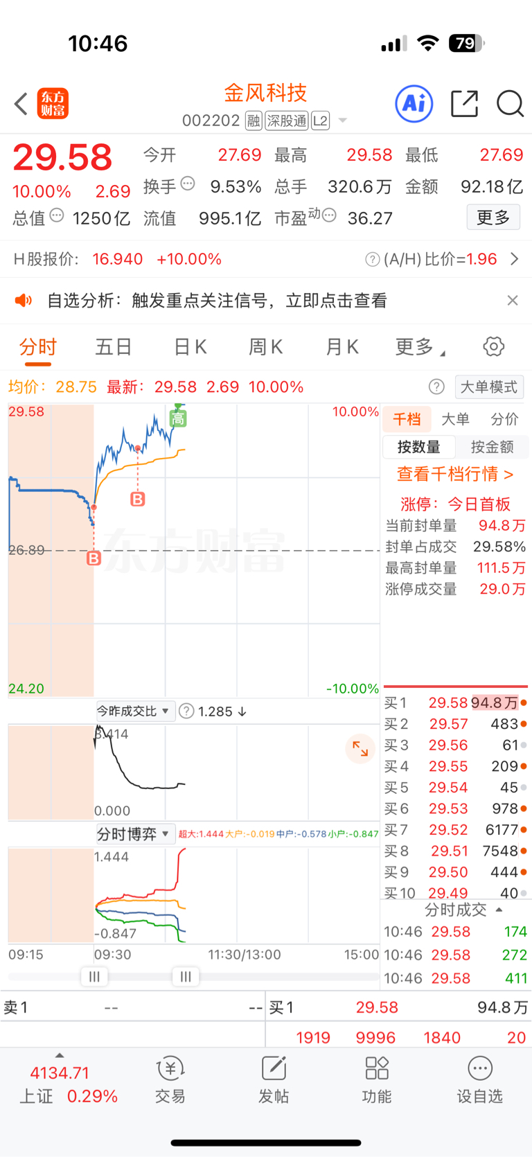 坚定看多,集合竞价买入。没想到途中动力十足,继续追高加仓。继续保持左手买金风,右