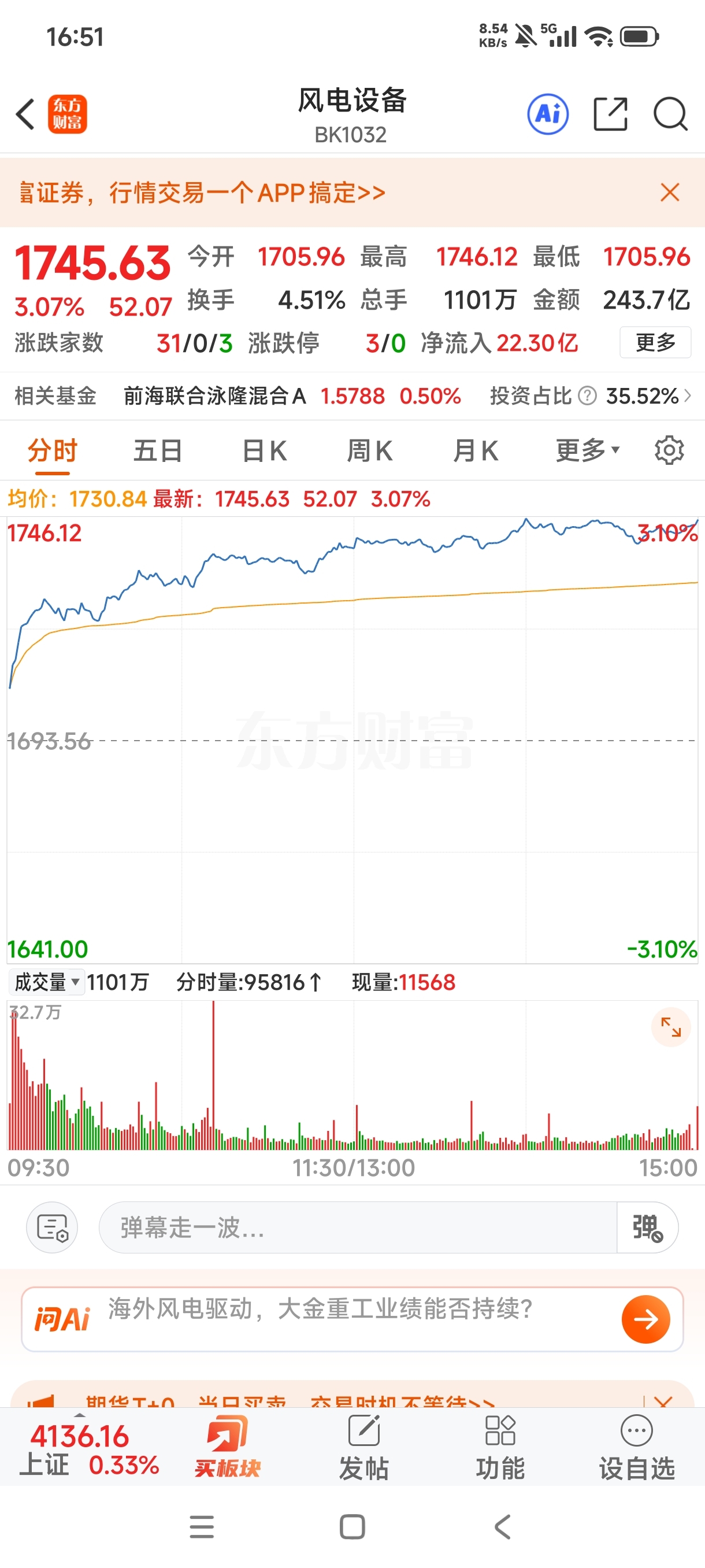 海外风电驱动,金风科技千亿海上风电起,金风三大风口在手,商业航天十风电设备十储能,前天涨6%昨天早早就涨停,今天给我再来个涨停牌,功夫不负有心人。