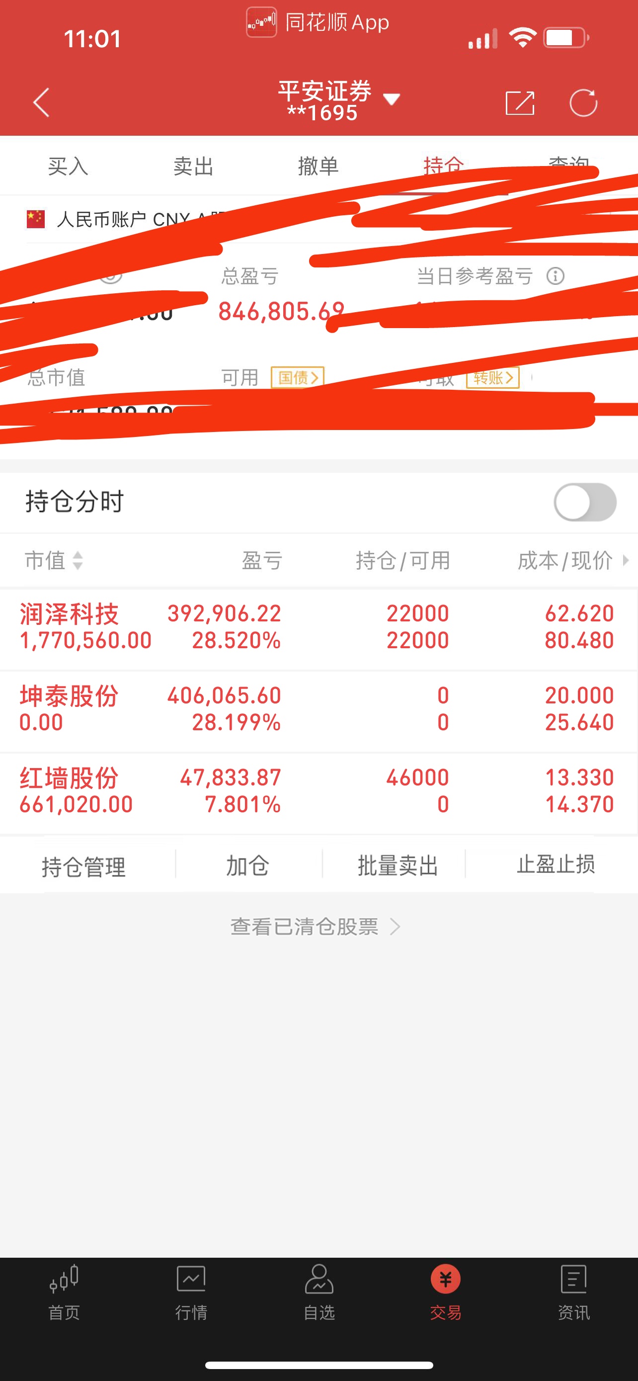 朋友们中午好,继续今日份更新;润泽科技继续持有。将坤泰科技止盈出局,这波收益挺不