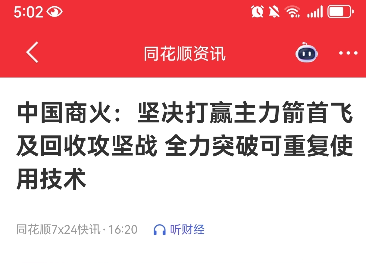 中国商火:坚决打赢主力箭首飞及回收攻坚战全力突破可重复使用技术。金风科技参股很多
