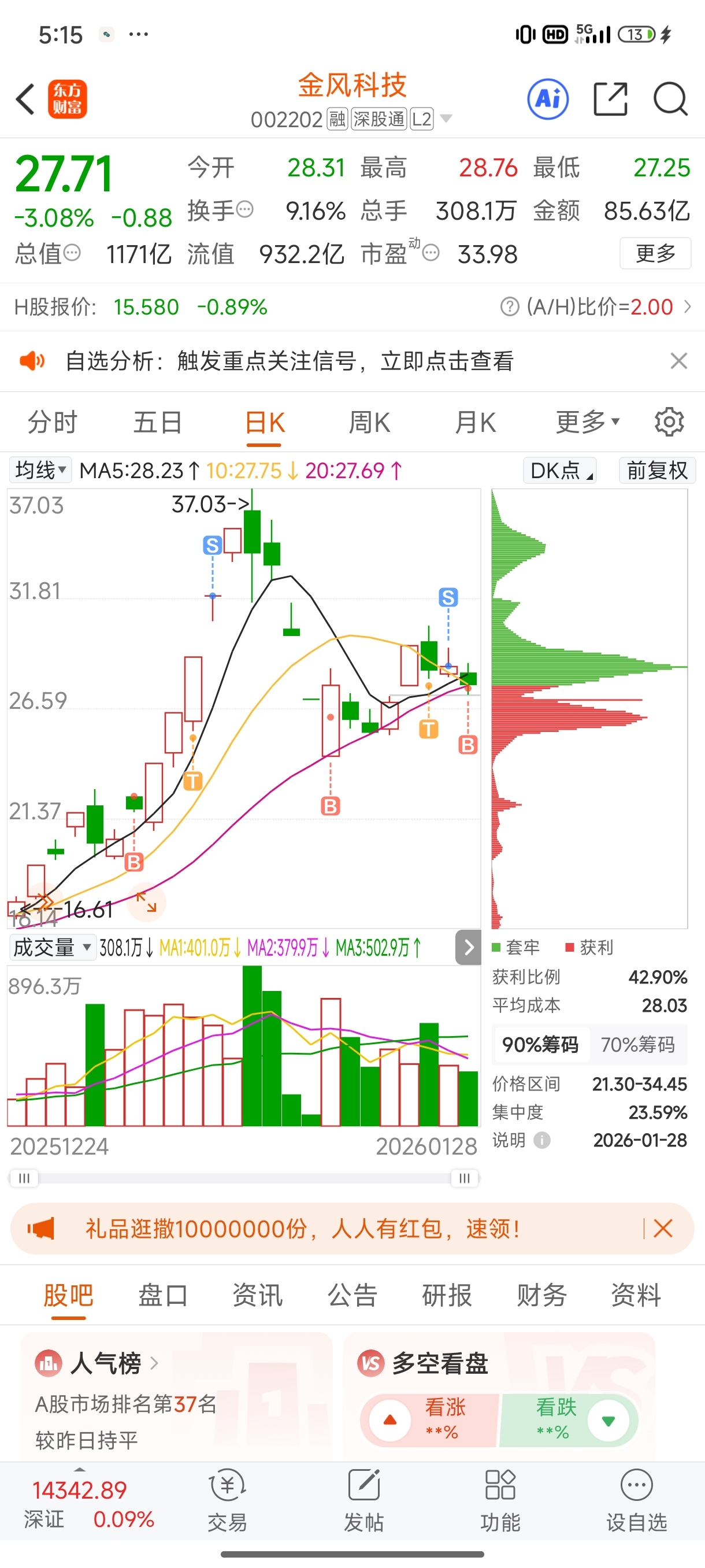 $金风科技(SZ002202)$ 昨天全部清仓,今天又接回来。保住所有利润