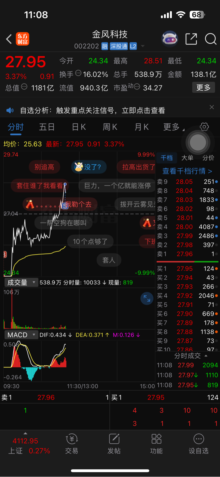 大盘雪崩的情况下稳住了,缺口补完了,也没有破位,坚定看好后市。图为开板当天做T成