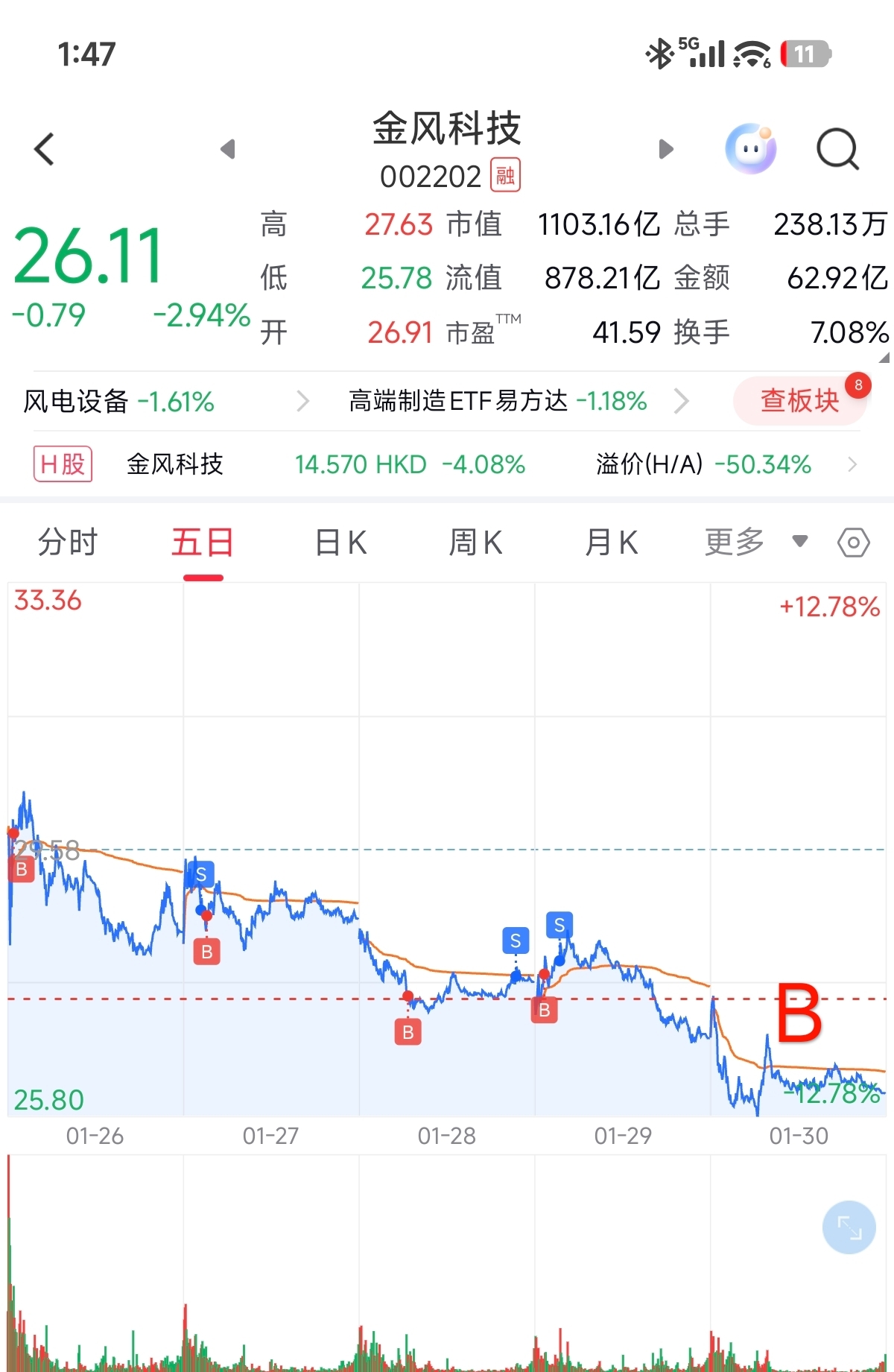 $金风科技(SZ002202)$ 都说不慌,那我也不慌了,做T做累了,直接加仓了。27.47成本,跌了就加呗,只要成本控制在一个涨停还有赚就行。