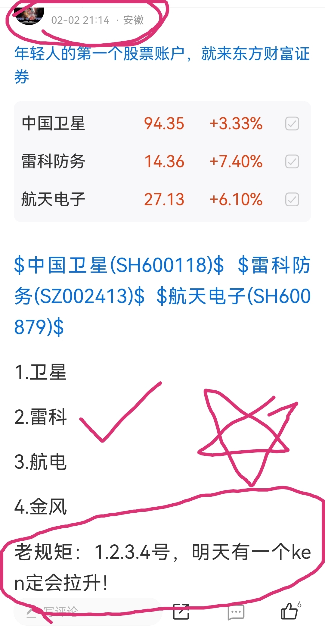 $雷科防务(SZ002413)$ $中国卫星(SH600118)$ $航天电子(SH600879)$