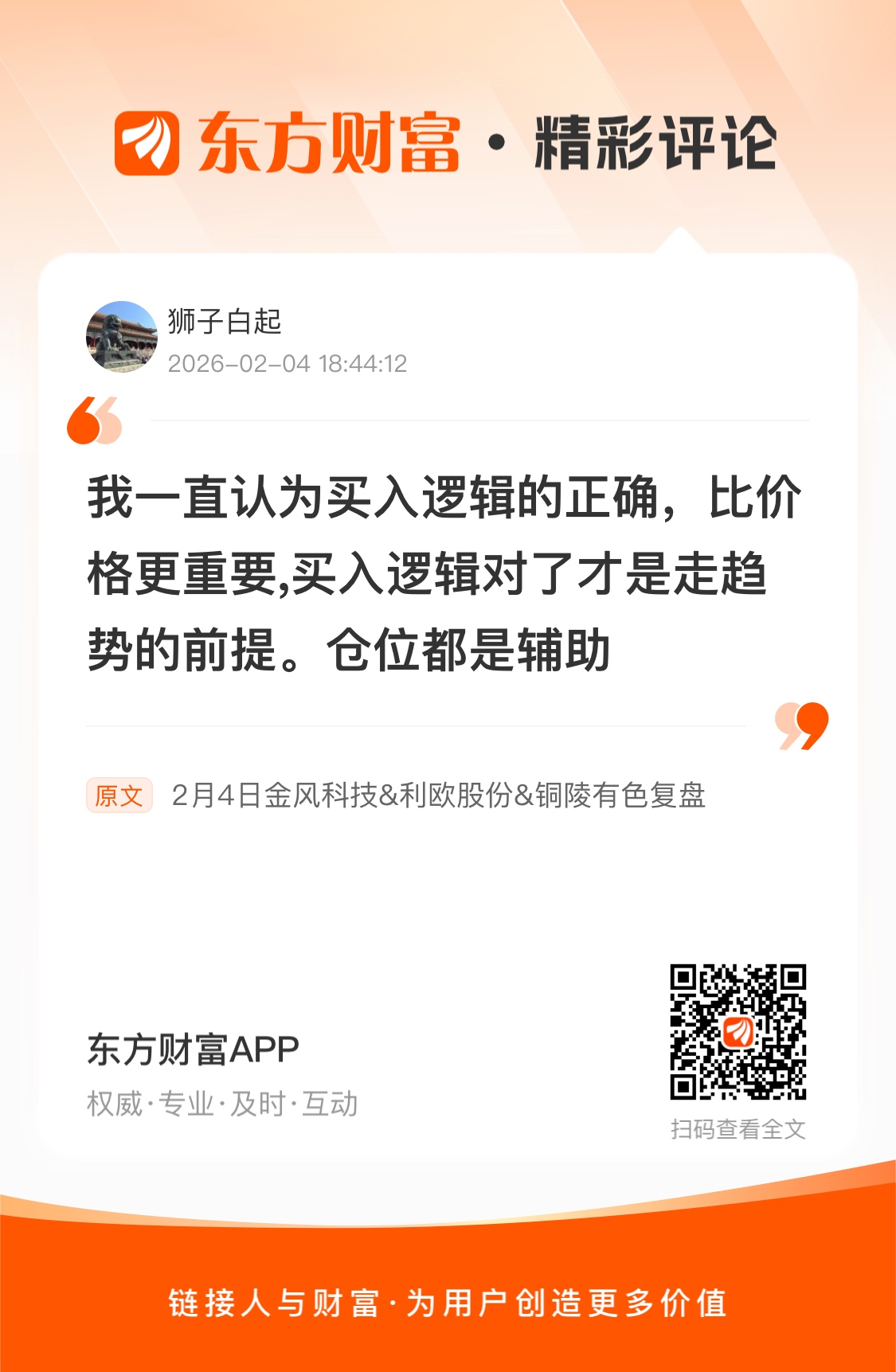 后续我也不会在帖子里交易时间公布我的操作,这个事情损人也不利已。第一我公布的时间有时差,比如今天利欧我清仓,发的时候可能股价已经很低,会误导大家割在地板上。第二早盘交易是最激烈的时候,我也需要专心看盘,有突发波动我要及时操作,很多时侯市场的机会窗就是十几秒,等我发完贴,回复完评论回来一看,机会已经没有了。我会优先自己的交易操作,交易企稳后,看情况再去回复大家问题。我的第二天操作思路,其实复盘贴都会写。