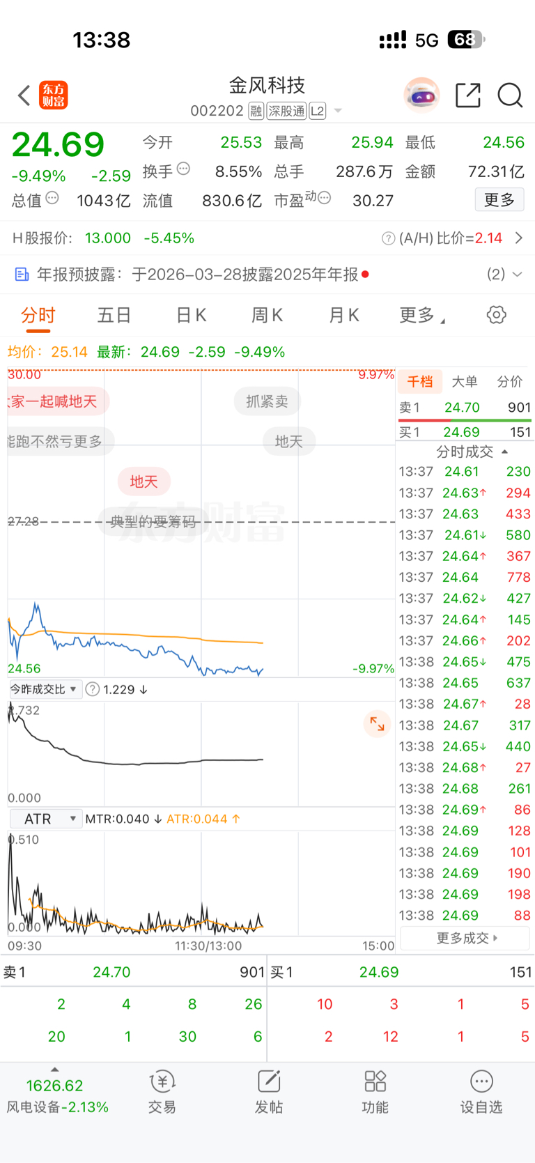 $金风科技(SZ002202)$ 亏20个点