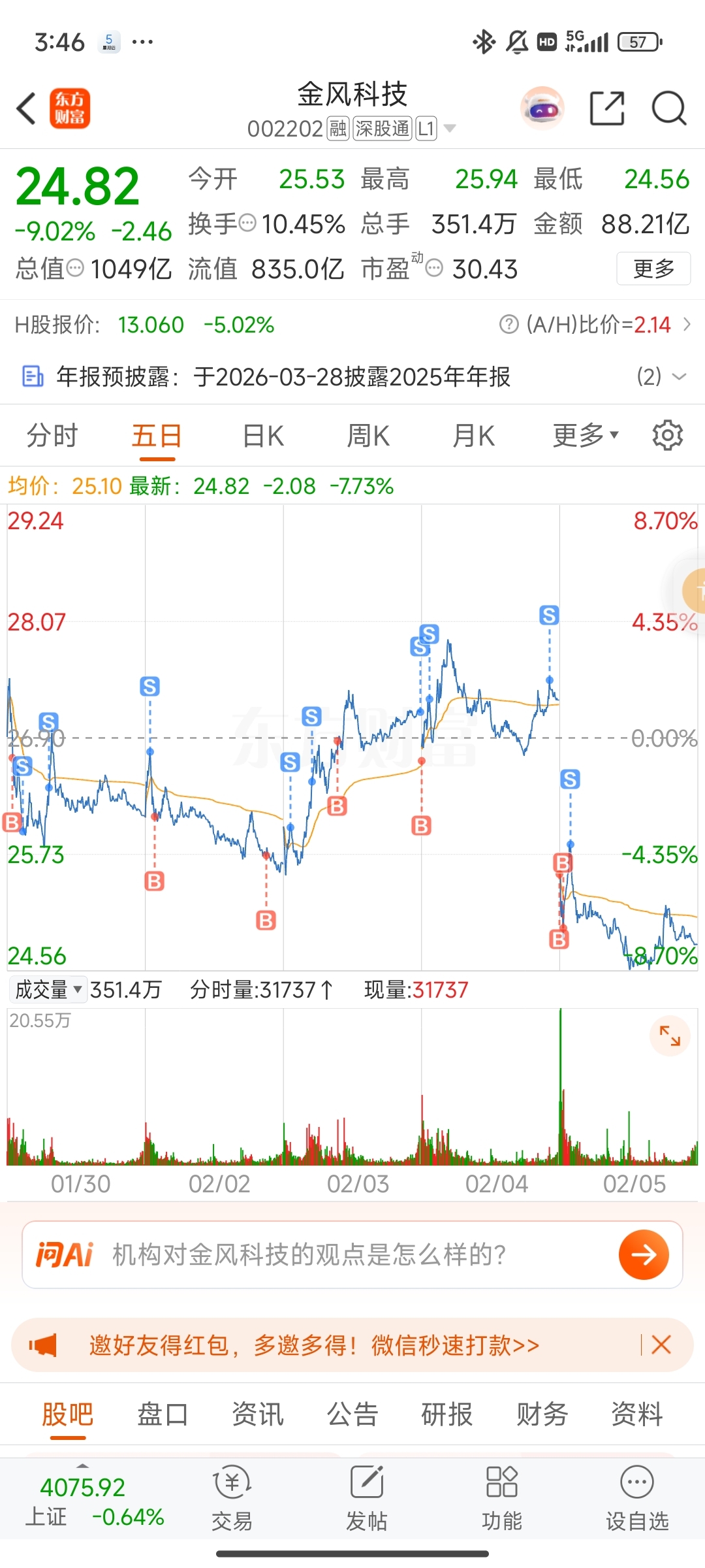 $金风科技(SZ002202)$ 成本逐日在降,但赶不上股价降的速度!