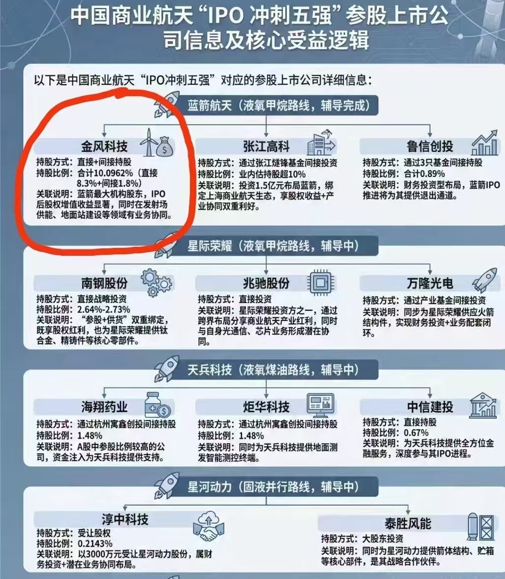 spaceX在美天天头条 万众瞩目,国内的话 对标 我们就看蓝箭航天今年最大热点(预计4-6千亿市值)对标spaceX近15万亿人民币的估值 股权的实质受益的 金风科技 再度崛起涨停板可期。