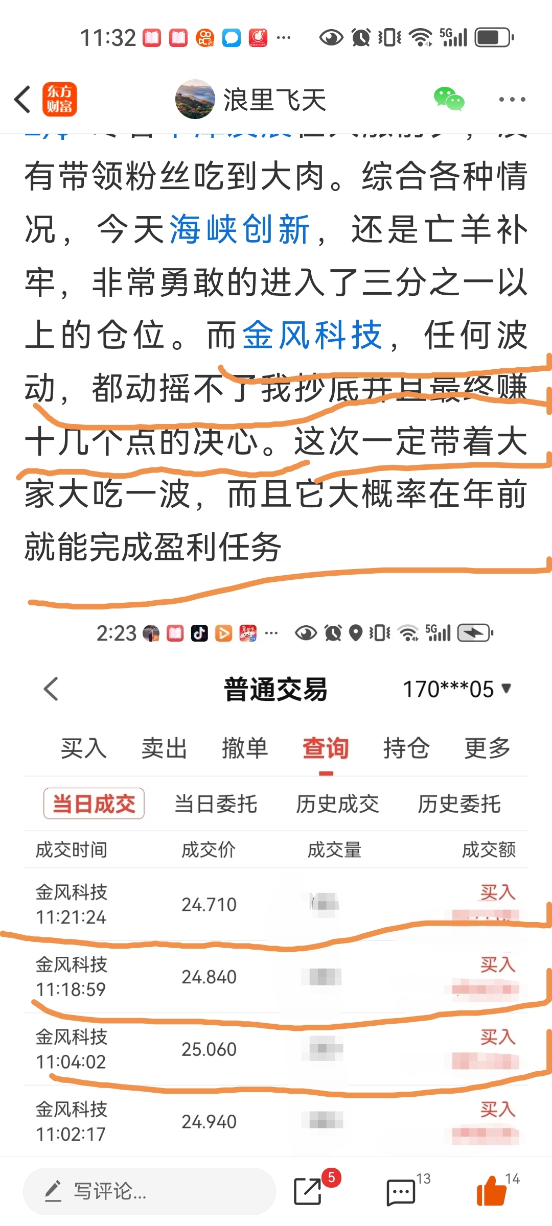 $金风科技(SZ002202)$ $天奇股份(SZ002009)$ 昨天在盘中,就发出了抄底金风科技的信息。誓要带着广大粉丝赚一笔。尽管今天盘前策略是要在25.2卖出一部分,但是无非少赚点。而我们卖出,新使我们获得极大的心理优势和仓位优势,能让我们剩余的仓位稳如泰山的守住更高价位。而且我们将不是怕跌,而是盼望着跌。早关注,很多粉丝虽然不是核心VIP,但不时我也会发些不要米的信息。