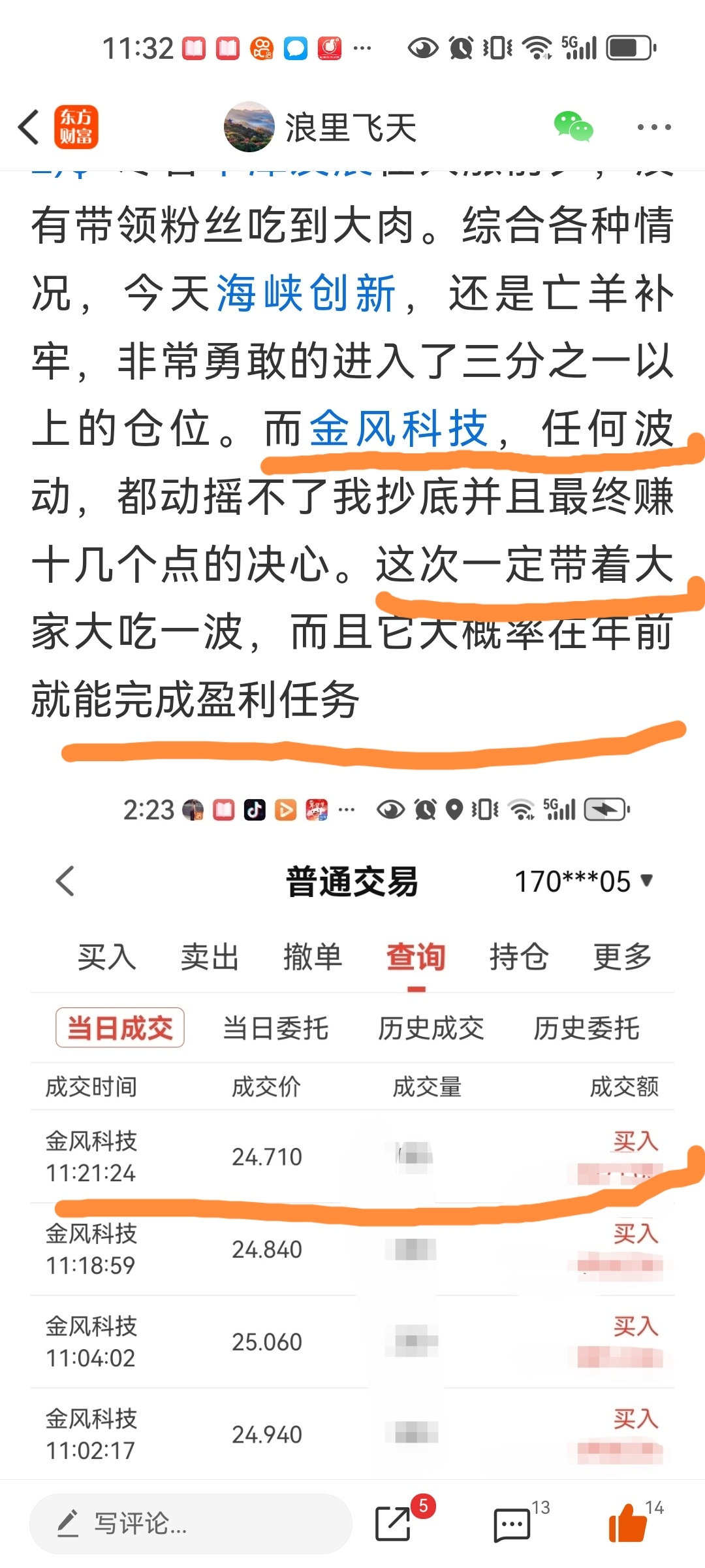 $金风科技(SZ002202)$ $天奇股份(SZ002009)$ 大跌那天,即带领核心VIP粉丝,勇敢抄底金风科技。如果考察我这条信息的确是盘中提前发布的,那么可以关注。因为我将在今晚12半左右,发布对金风科技明天走势的看法。希望能给粉丝们多个操作建议。
