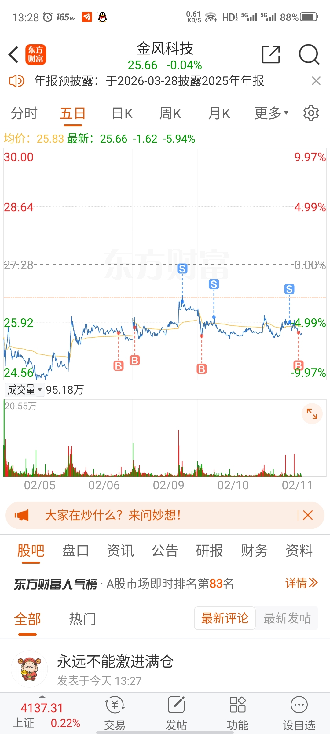 温馨提示: 1.根据《证券法》规定,禁止编造、传播虚假信息或者误导性信息,扰乱证券市场;2.用户在本社区发表的所有资料、言论等仅代表个人观点,与本网站立场无关,不对您构成任何投资建议。用户应基于自己的独立判断,自行决定证券投资并承担相应风险。《东方财富社区管理规定》
