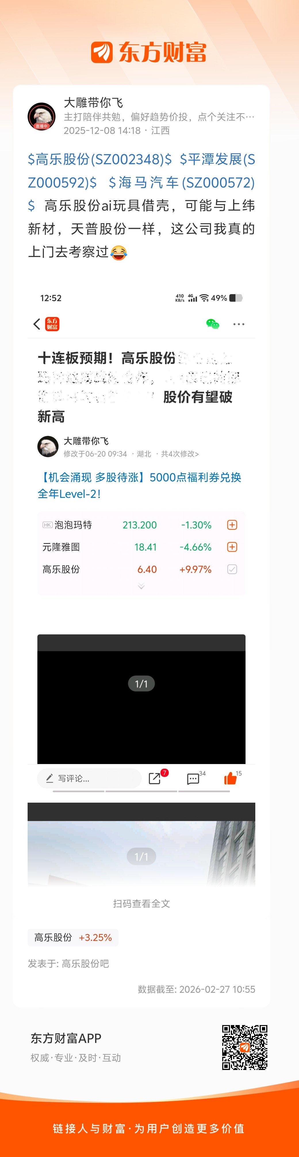 温馨提示: 1.根据《证券法》规定,禁止编造、传播虚假信息或者误导性信息,扰乱证券市场;2.用户在本社区发表的所有资料、言论等仅代表个人观点,与本网站立场无关,不对您构成任何投资建议。用户应基于自己的独立判断,自行决定证券投资并承担相应风险。《东方财富社区管理规定》