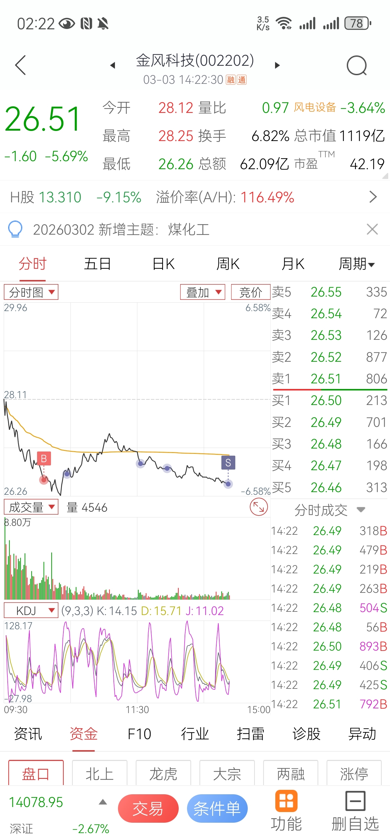 $金风科技(SZ002202)$ 跟随市场了,市场流出1700多亿,都出来避险了,留300股早上买进的,市场钱这么出感觉后面几天难有行情,在金风也折腾有一个月了,从小赚到小亏,如果后面没有买入机会就算了