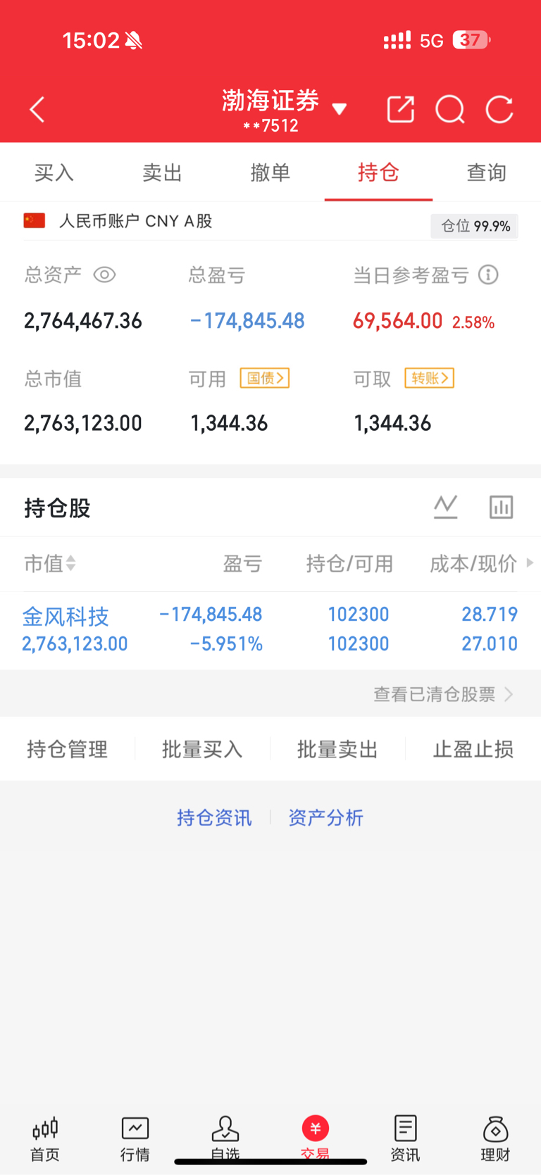 今天小金上涨两个多点目前水下5.9%