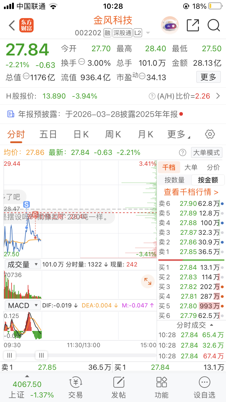$金风科技(SZ002202)$ 做T做早了哇