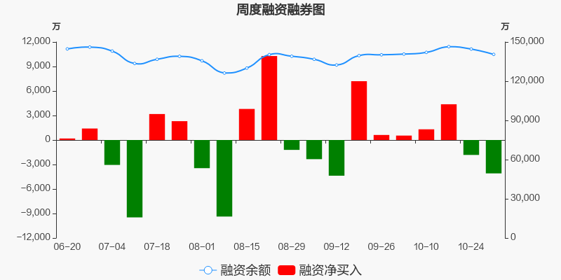 海亮股份本周(2025/10/27-2025/10/31)累计跌幅达4.07%,截至10月31日最新股价报收11.51元。从增量上来看,10月27日至10月30日融资买入交易规模1.33亿元,融资偿还规模1.74亿元,期内融资净偿还4087.43万元。从存量上来看,截止11月2日,海亮股份融资融券余额14.07亿元,其中融资余额规模14.05亿元,融券余额规模141.6万元。