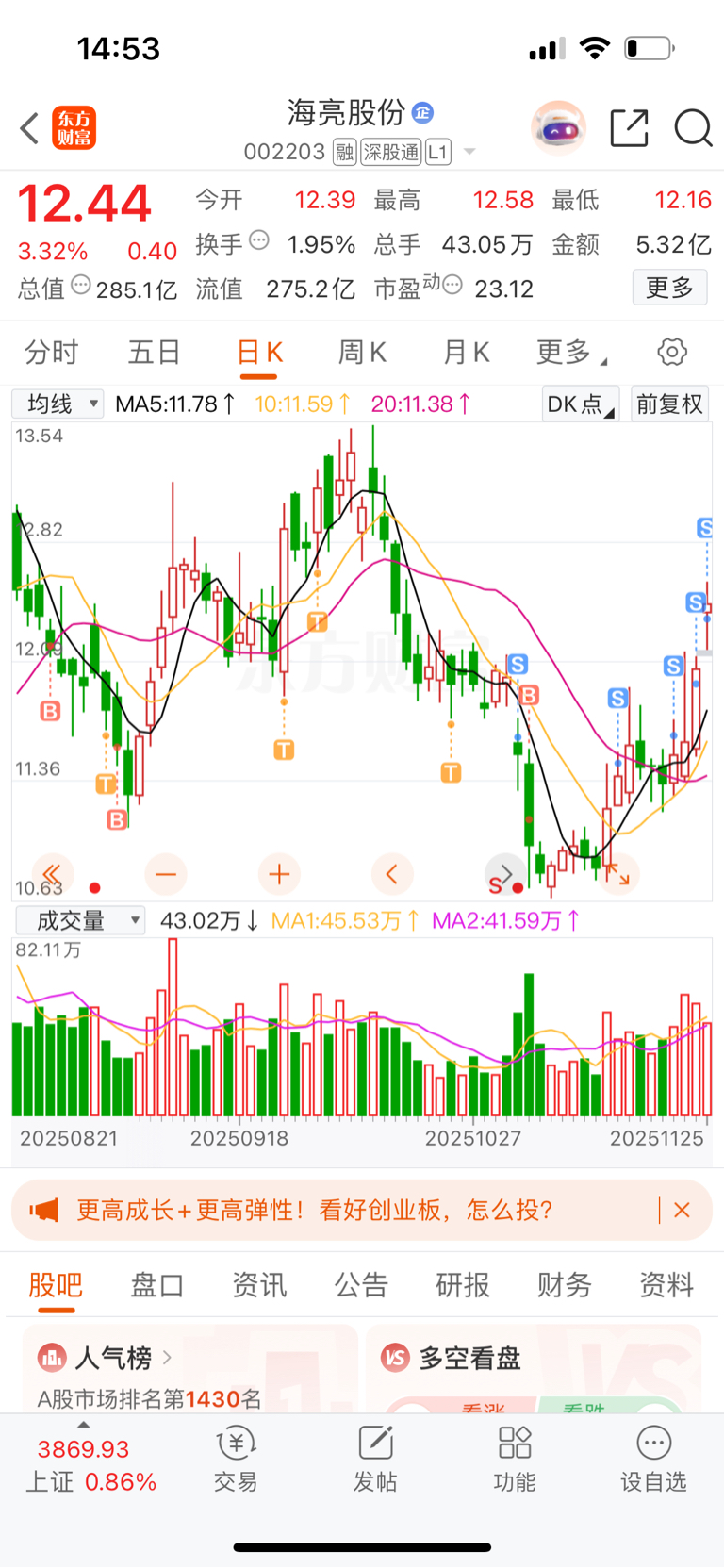 $海亮股份(SZ002203)$ 好了,分批卖出,如果明天能摸到13附近,就暂时全清掉。
