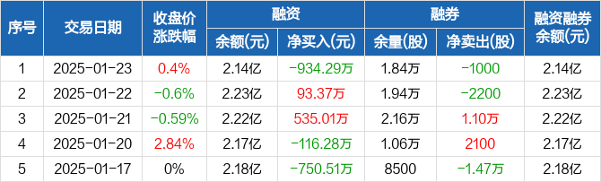 大连重工:融资净偿还934.29万元,融资余额2.14亿元(01-23)