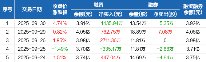 大连重工:融资净偿还1435.94万元,融资余额3.91亿元(09-30)